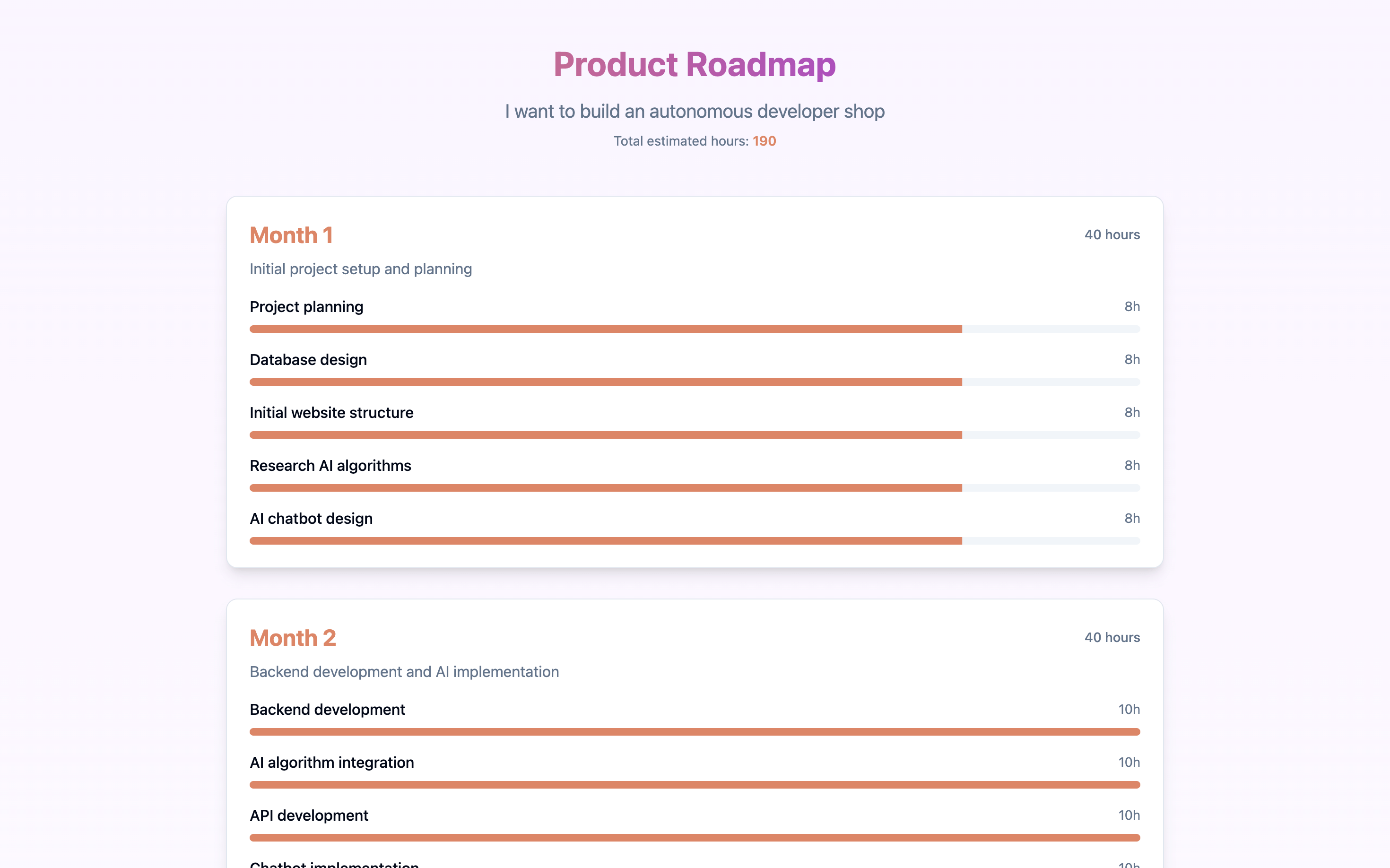 During our first kickoff session, our team works with you to refine your idea, narrowing the scope to focus on the core experience and outcomes that will deliver maximum value to your customers. Once the Minimum Viable Product (MVP) is defined, our experts guide our autonomous platform to build it in days, not months.